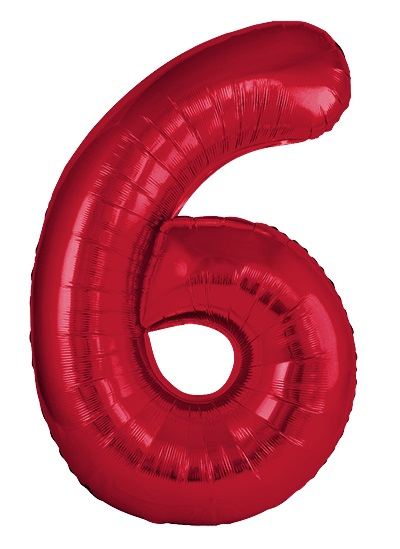 Шар (40''/102 см) Цифра, 6 Slim, Красный, Металлик