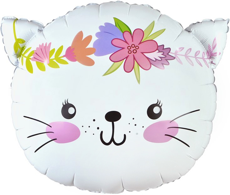 Шар Фигура (23''/58 см), Котенок в цветах, Белый